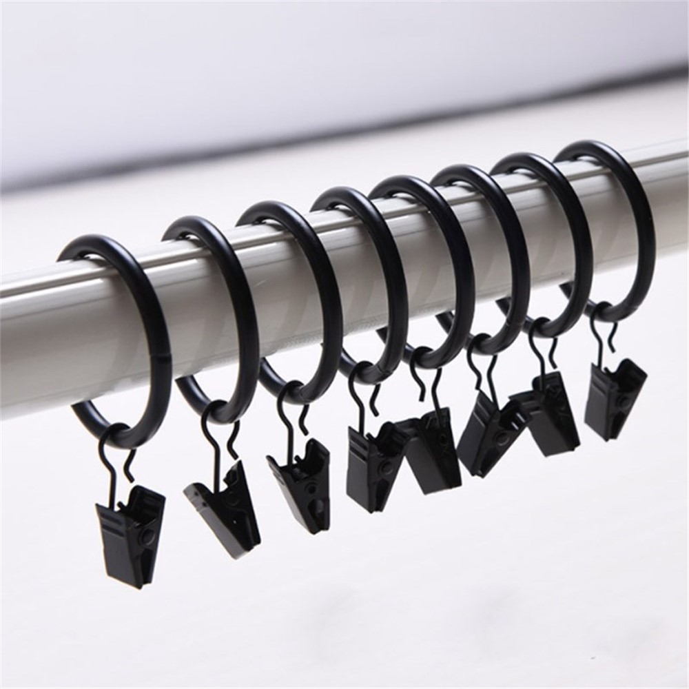 10-Piece Heavy-Duty Shower-Curtain Rings with Clips - Rust-Resistant Iron Hooks, 25 mm