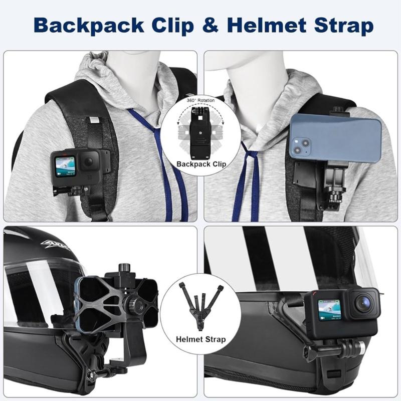 11-in-1 Action Camera Accessories Kit for GoPro - Head Strap, Chest Harness, Chin Mount, Backpack Clip and Phone Holder Set