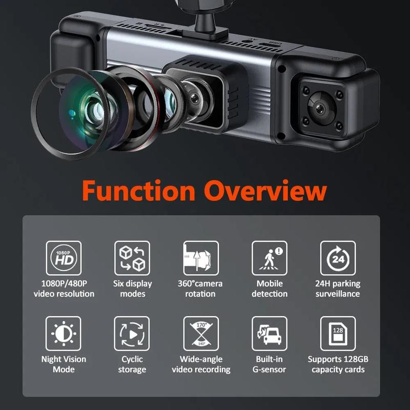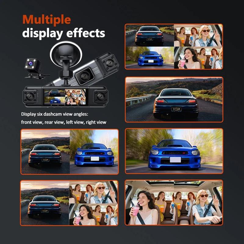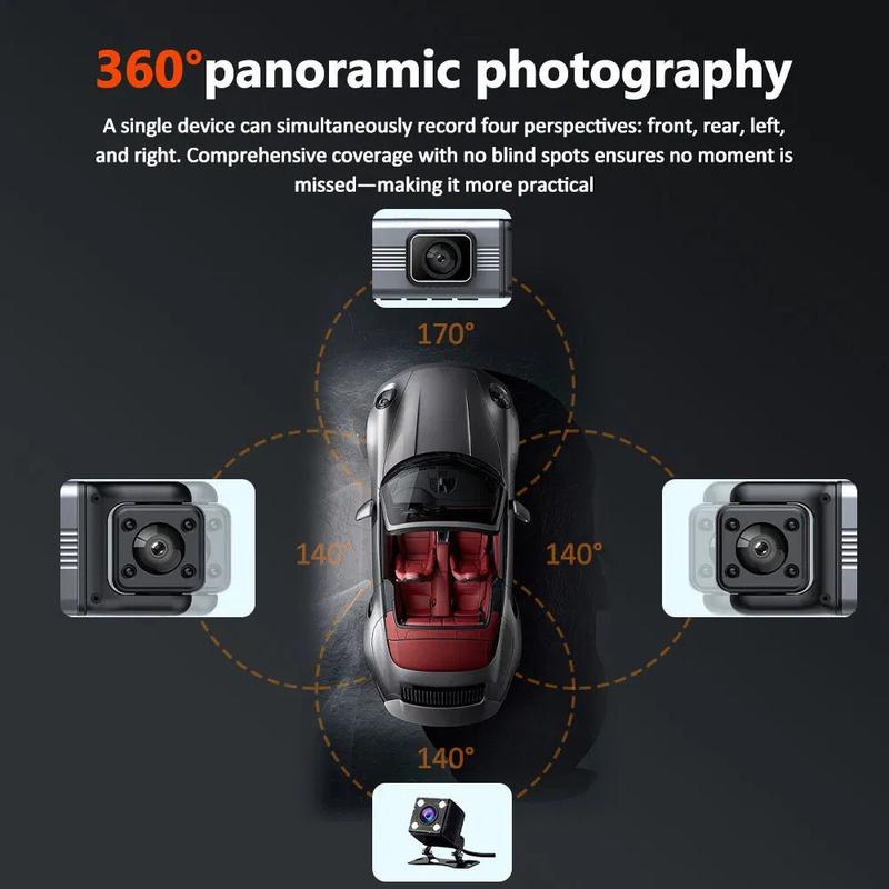 Stay safe and fully protected on the road with this 3.0" IPS Screen 4-lens dash cam, designed to record your journey with exceptional clarity. Featuring a 1080P front camera and three additional 480P side and rear lenses, it provides complete all-round coverage for a safer and more confident driving experience.