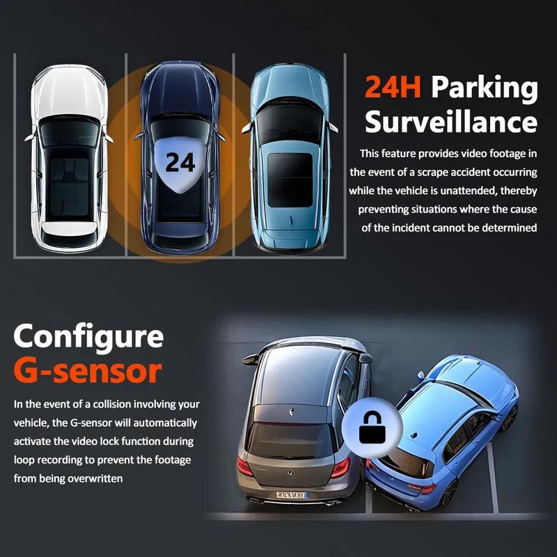 - Functions: Loop recording, parking mode, motion detection, G-sensor