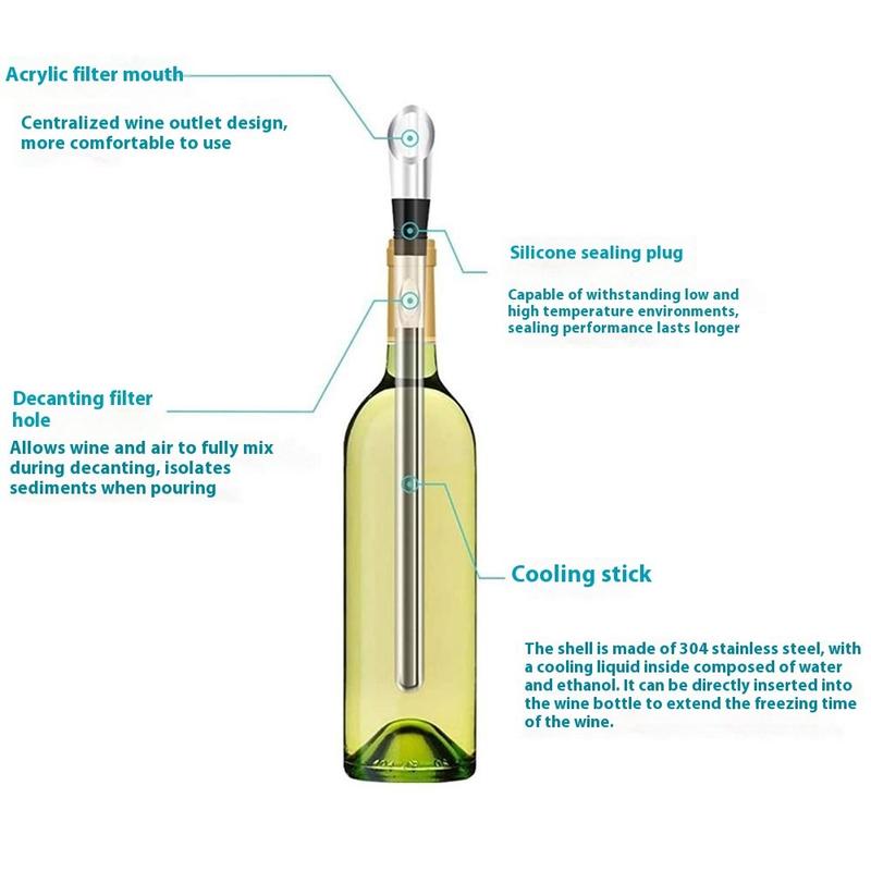 • 3-in-1 Stainless Steel Wine Chilling Rod - Iceless Cooler Stick with Aerator & Pourer