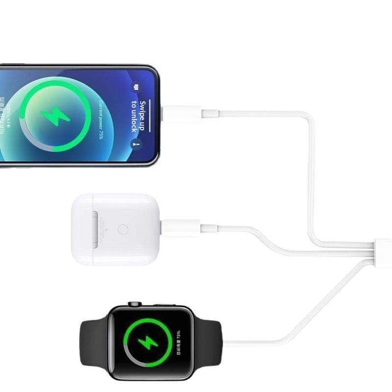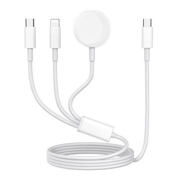 3-in-1 USB-C Charging Cable to USB-C, Lightning, Apple Watch Wireless Charger - 1m