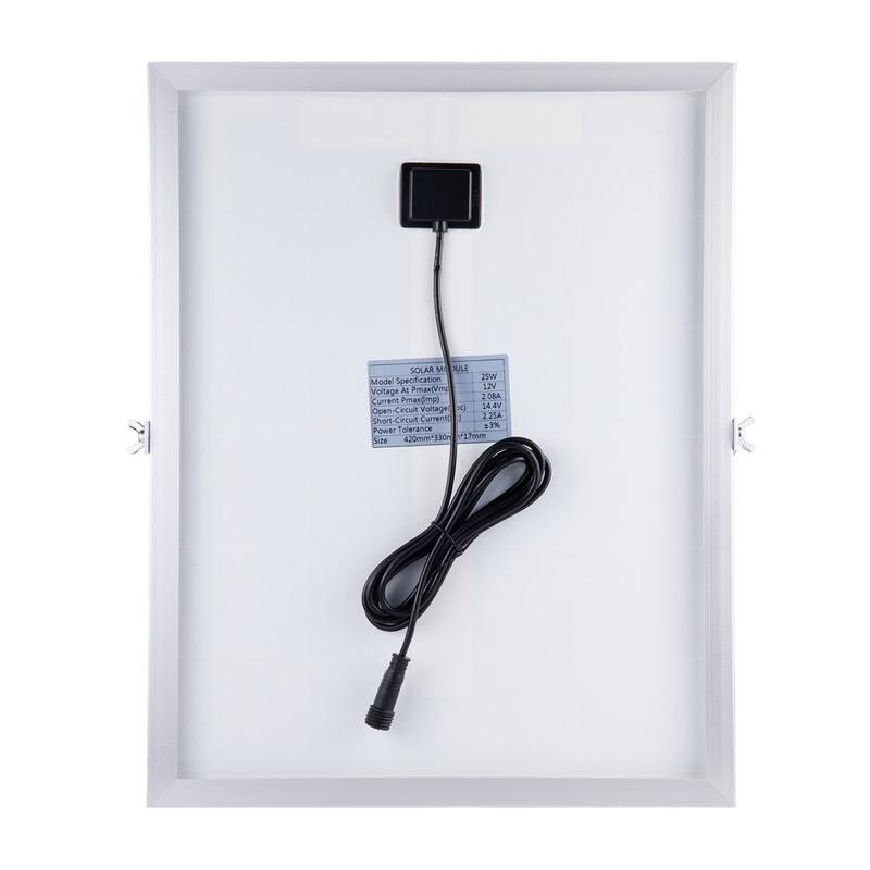 - Durable solar panel build: 3.2 mm tempered glass + aluminium alloy frame (17 mm thickness)