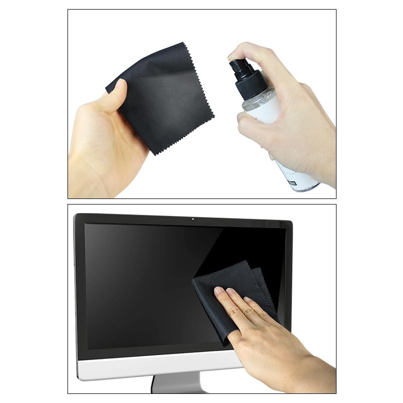 - Set contains cleaning spray (100ml), microfiber cloth (20cm x 20 cm) and a brush