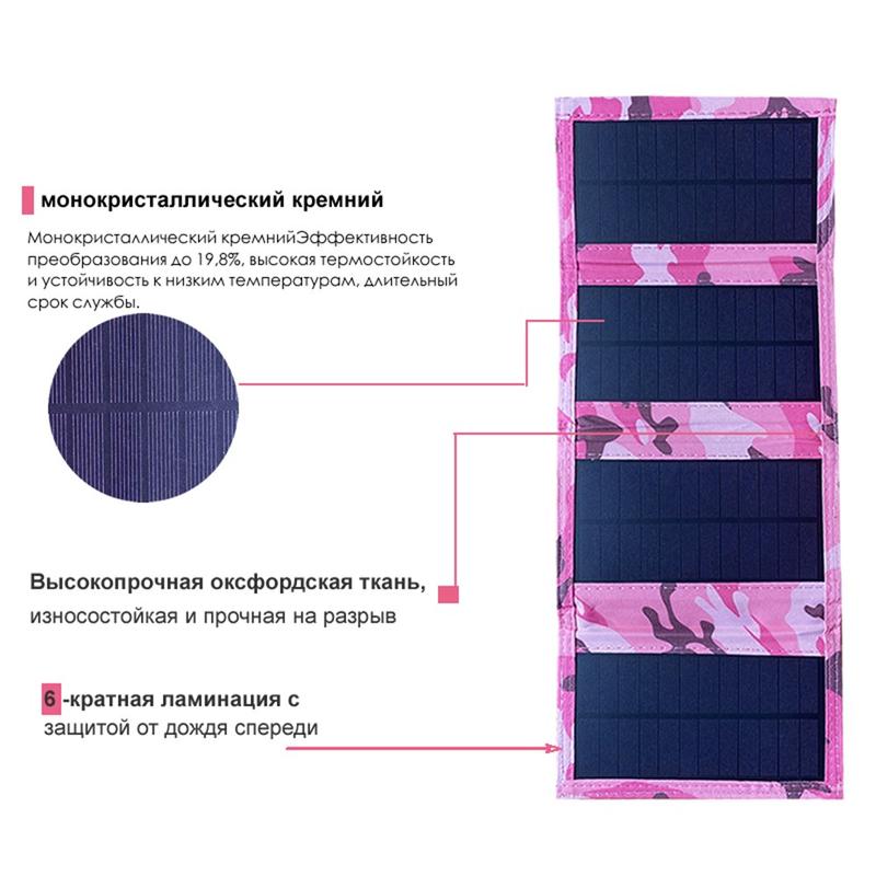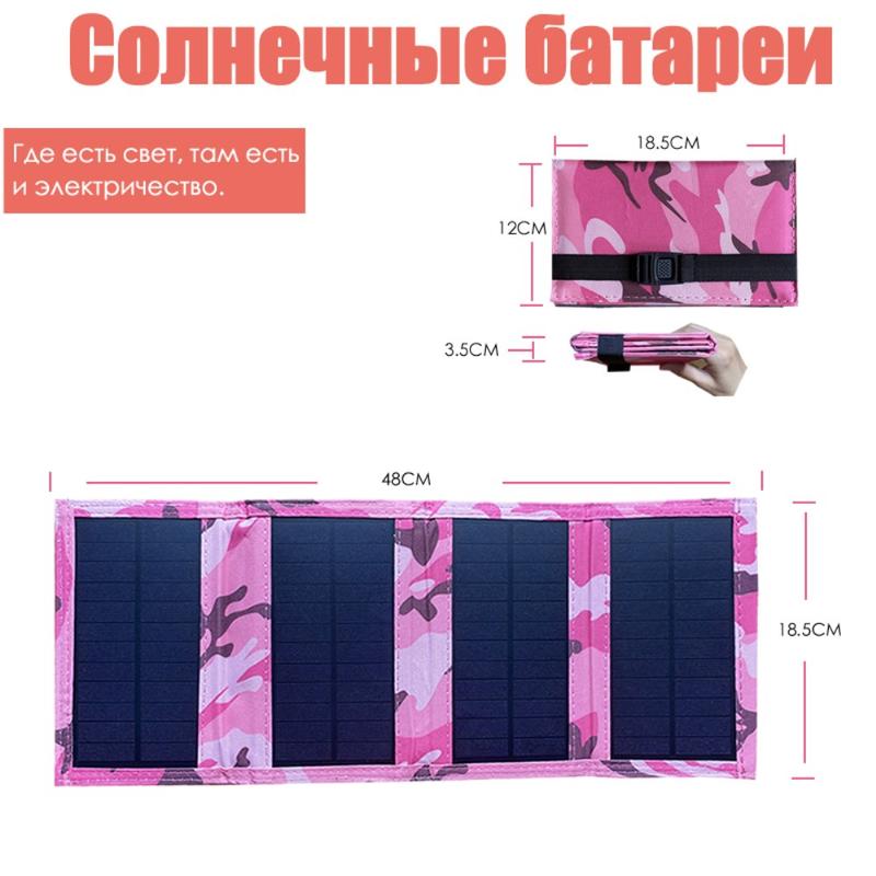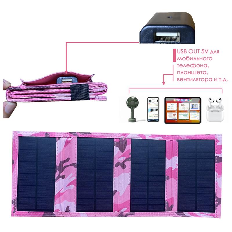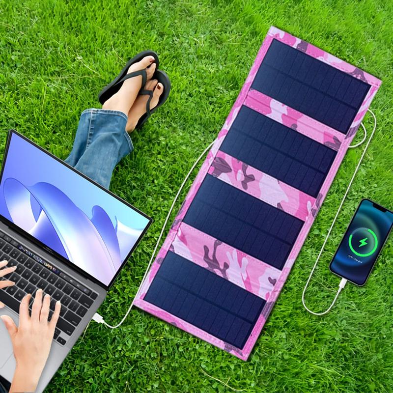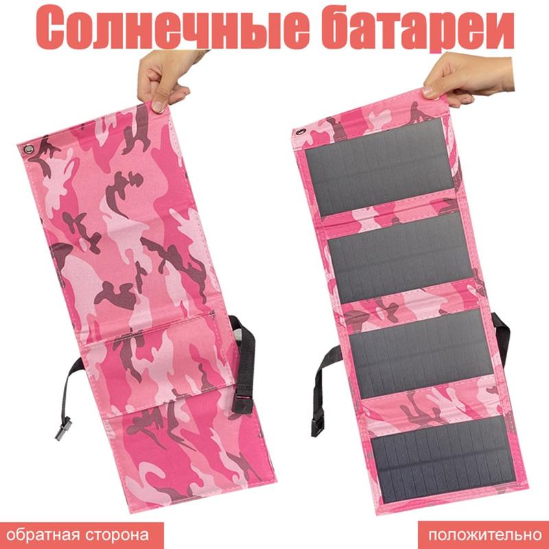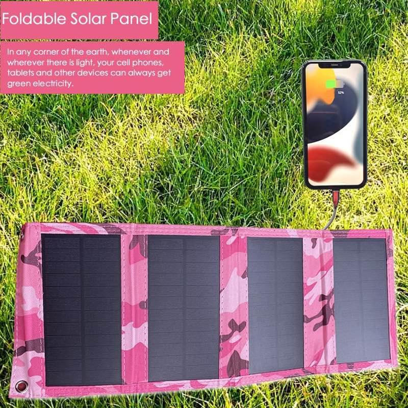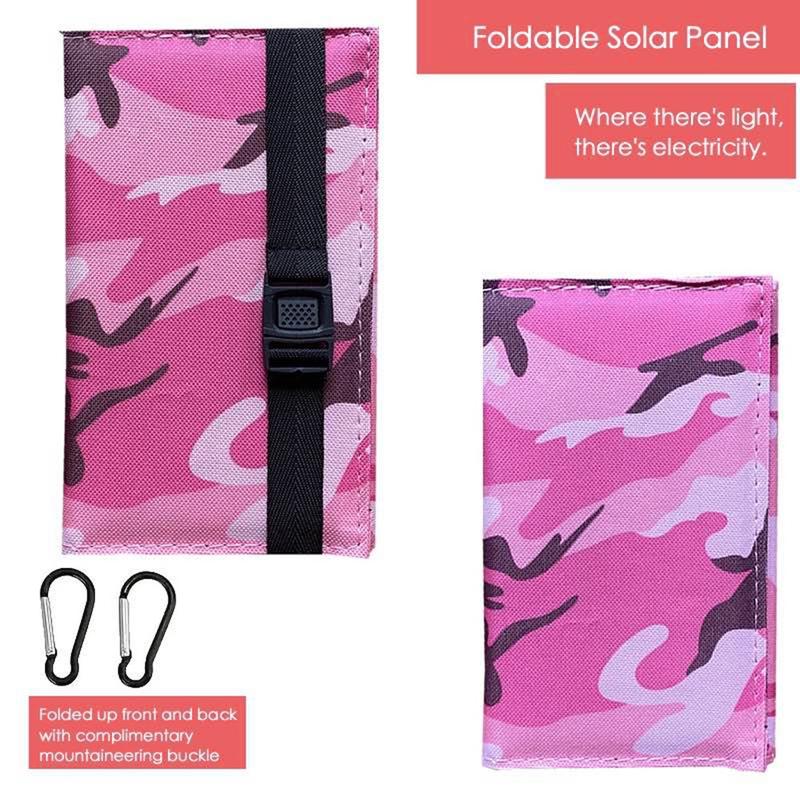 4-Fold Portable Solar Panel Charger 20W for Camping - Pink Camouflage
