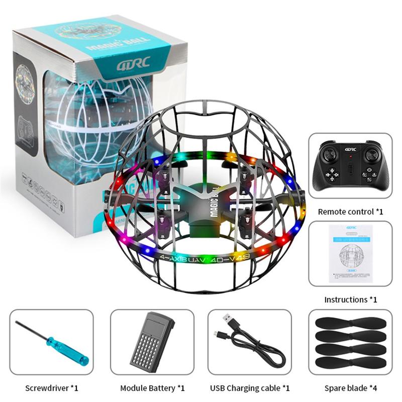 The 4DRC 4D-V49 football-style drone is designed for safe, entertaining flights indoors and outdoors. Its spherical protective cage surrounds the propellers, helping reduce impact risk while making it suitable for children and family play.