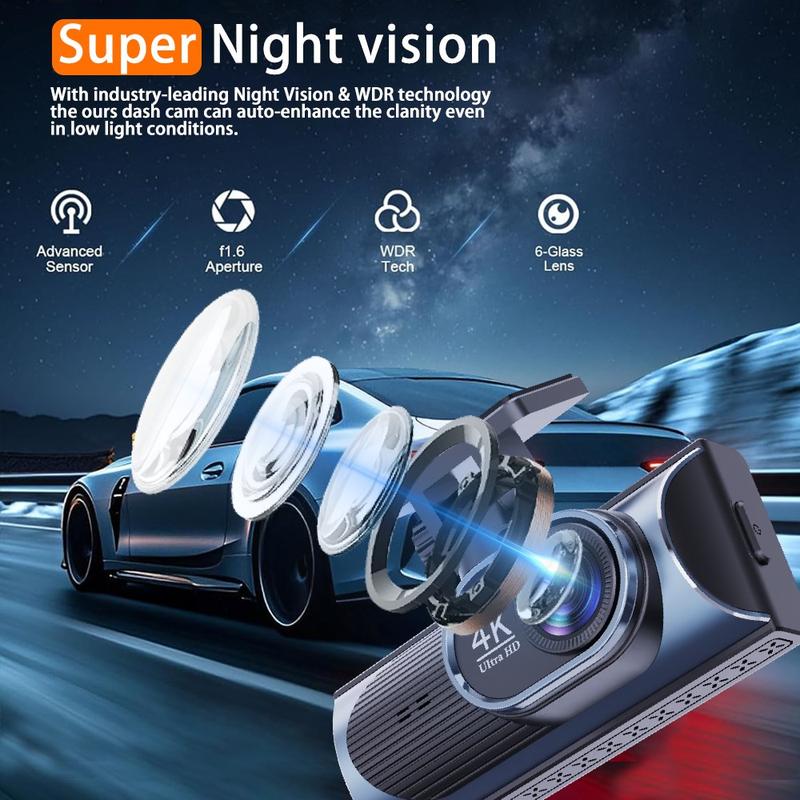 4K Dual Lens Dash Cam - 170 Wide Angle Car DVR with WiFi, GPS Tracking and Night Vision
