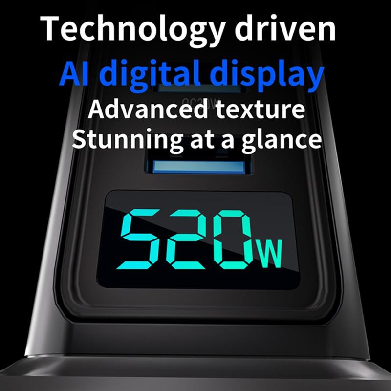 Charge your entire setup from one powerful hub. This 520W GaN 5.0 desktop charging station is built for heavy multi-device use, offering 8 ports (4x USB-C + 4x USB-A) and a digital real-time power display so you can monitor output at a glance. It’s ideal for powering laptops, tablets, phones, headphones, game controllers, cameras, and power banks—at the same time—while keeping your workspace tidy and cable chaos under control. With AI temperature monitoring and multi-layer safety protections, you get fast, stable charging without compromising peace of mind.
