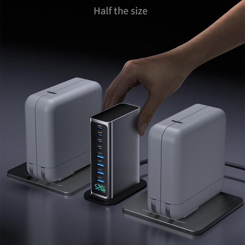 520W GaN 5.0 Desktop Charging Station with Digital Power Display - 8 Ports (4x USB-C up to 100W + 4x USB-A) Fast Charger, PPS/PD/QC