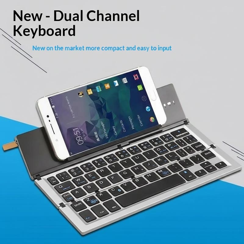 The 608 Tri-Fold Bluetooth-Compatible keyboard is built for users who need portability without sacrificing build quality. With dual channel connectivity and a premium aluminum alloy body, it allows you to switch smoothly between devices while enjoying a solid, stable typing experience. Its compact folding design and integrated device stand make it ideal for mobile work, travel, and everyday multitasking.