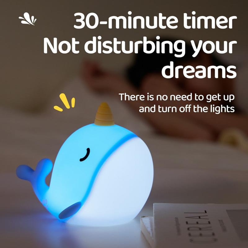 A044 Narwhal Silicone Night Light - Tap Control, USB-C Rechargeable & Soft Ambient Glow