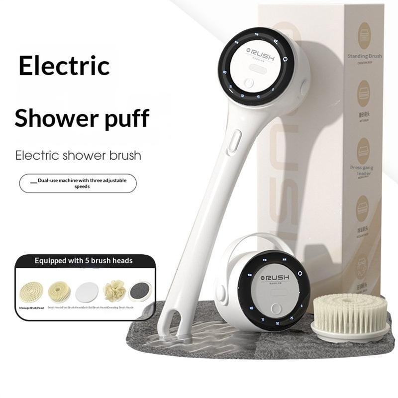 A8 Electric Shower Brush with 5 Heads, LED Display - White