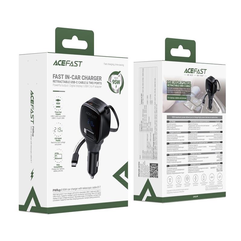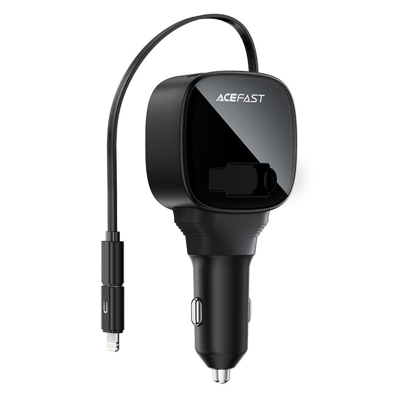 • Acefast B17 95W Fast Car Charger - USB-C/USB-A with LED Display & Retractable Cable