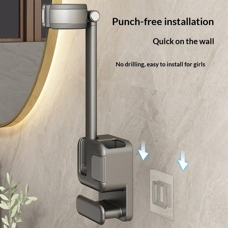Make your daily hair routine easier and keep your bathroom more organized with this adjustable hands-free hair dryer holder. Designed for convenient wall mounting without drilling, this practical storage rack gives you a secure place for your hair dryer while freeing your hands for easier styling, brushing, or sectioning your hair.
