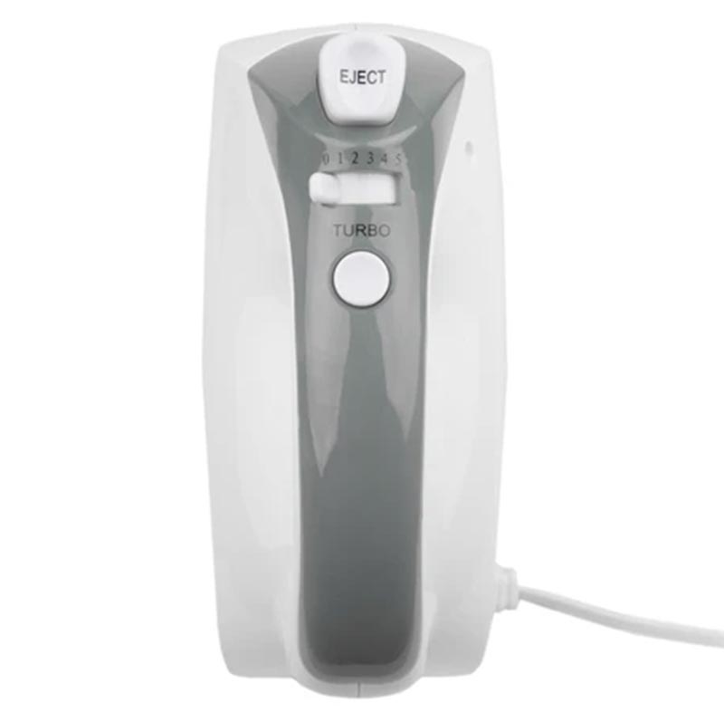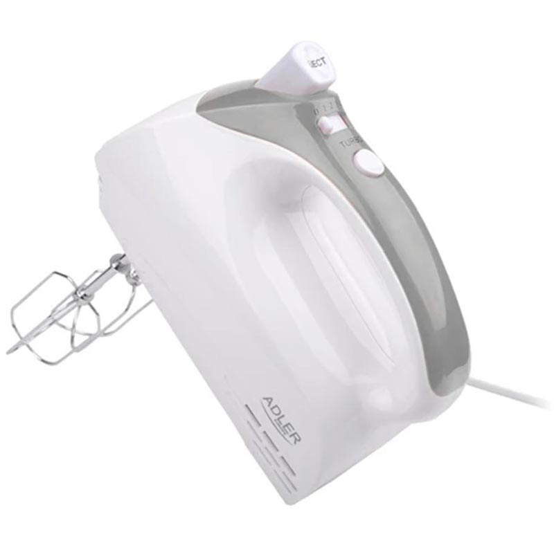 A very handy 300W mixer that is an indispensable tool for anyone who bakes cakes and cookies.It allows to use it at 5 different speeds, depending on what kind of food you prepare. Due to that fact it can be used as well to mix the flour with other ingredients as to whip egg whites. When needed, you can use the TURBO function. The mixer is very practical and reliable and can be utilised for a longer period of time without a risk ofit breaking down.