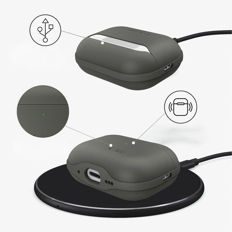 AirPods Pro 3 Tech-Protect NaturalFit Leather Case - Olive Green