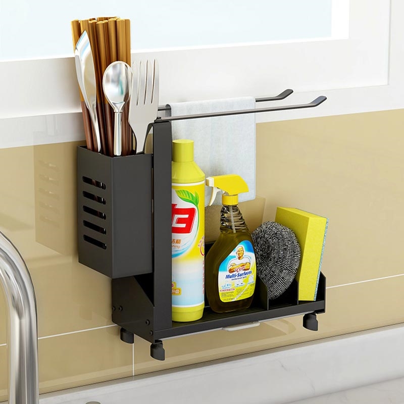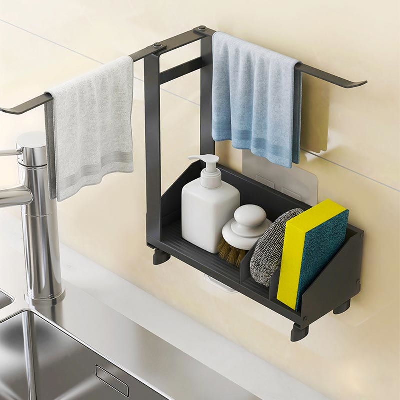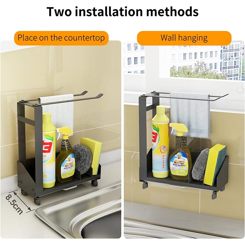 Made from durable aluminum and carbon steel, the organizer offers long-lasting stability and resistance to daily wear. It requires no installation—simply place it on the counter or hang it as needed. Its compact structure fits most sink areas, making it an ideal upgrade for kitchens, utility sinks and compact living spaces.