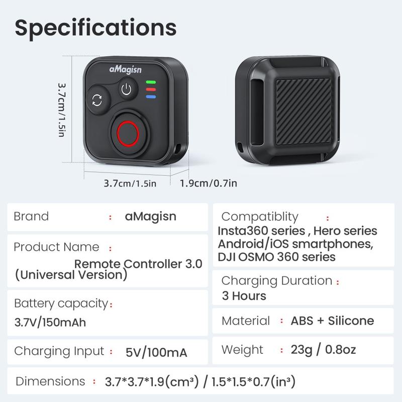 Amagisn Universal Bluetooth Remote Control for iOS and Android Phones, Insta360, GoPro Hero and DJI Action Cameras - One-Button Photo and Video Controller