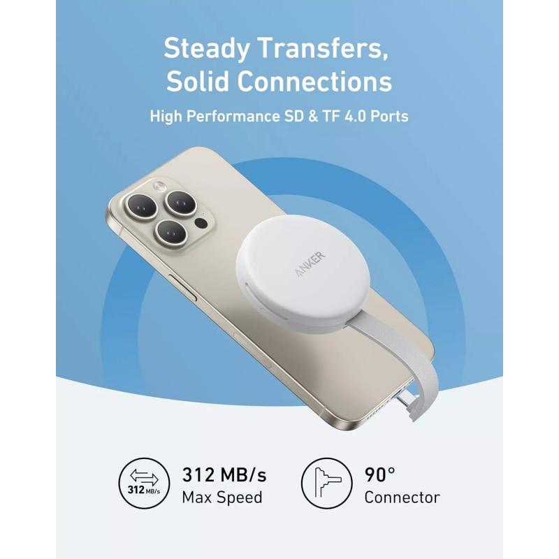 The Anker MagGo USB-C Adapter is a portable magnetic card reader designed for fast data transfer and smooth workflows on USB-C iPhones. Built for iPhone 15 and 16 series devices, it allows you to read SD and TF memory cards at high speed while charging your phone at the same time. With a compact design, built-in cable, and magnetic attachment, it is ideal for creators who want to move quickly from capturing content to editing without interruptions.