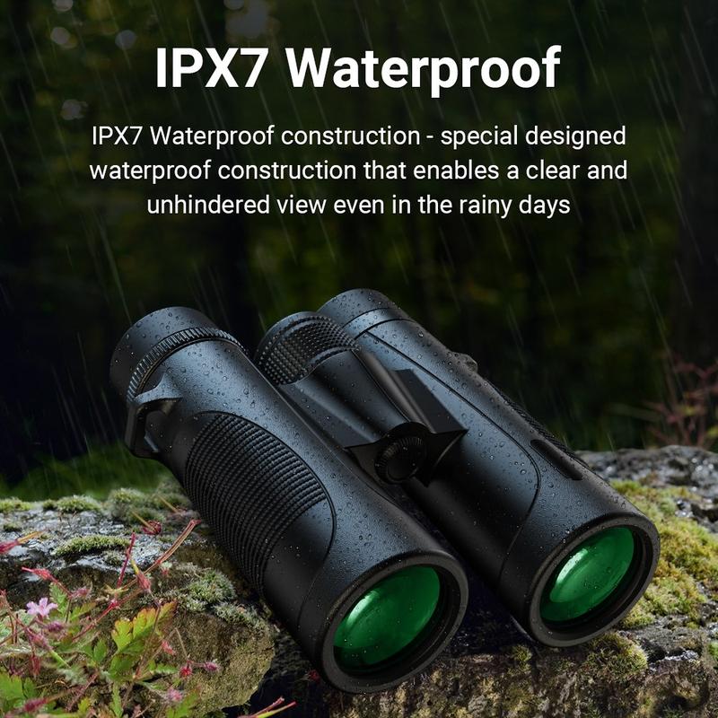 - IPX7 binoculars can withstand accidental submersion and heavy rain