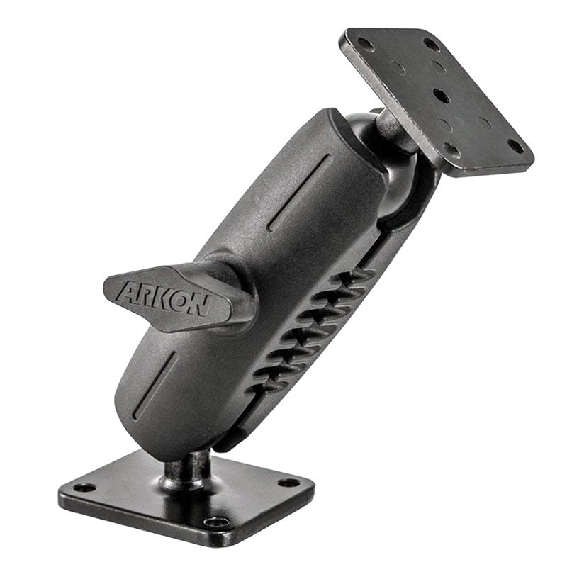 This versatile car dash and wall mounting pedestal from Arkon is perfect for mounting various devices, cameras, holders, and adapters with a 4-hole AMPS pattern. The Arkon mounting pedestal boasts metal AMPS drill-base and adjustable head, for increased utility and stability of your mounted device. This mounting stand can be attached to any solid flat surface at your home or in the car.