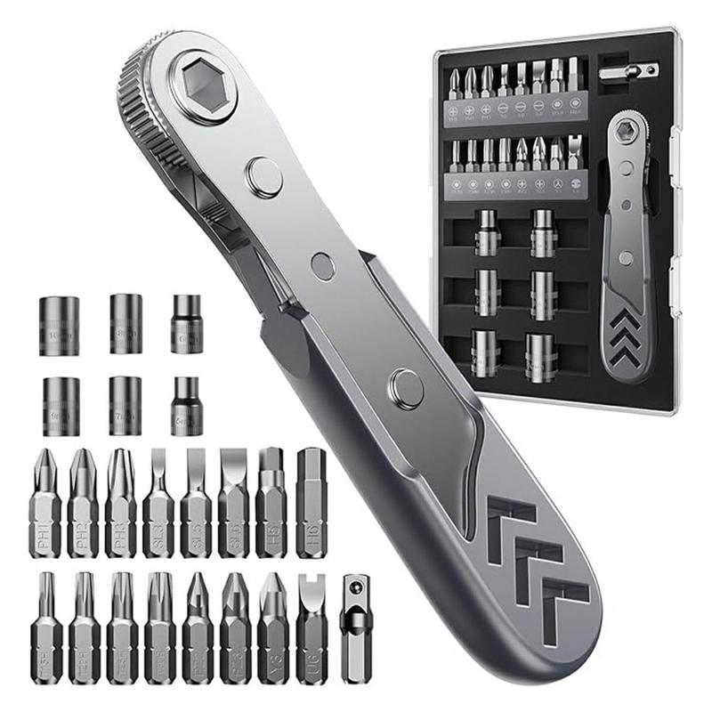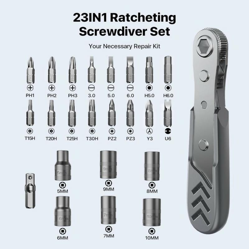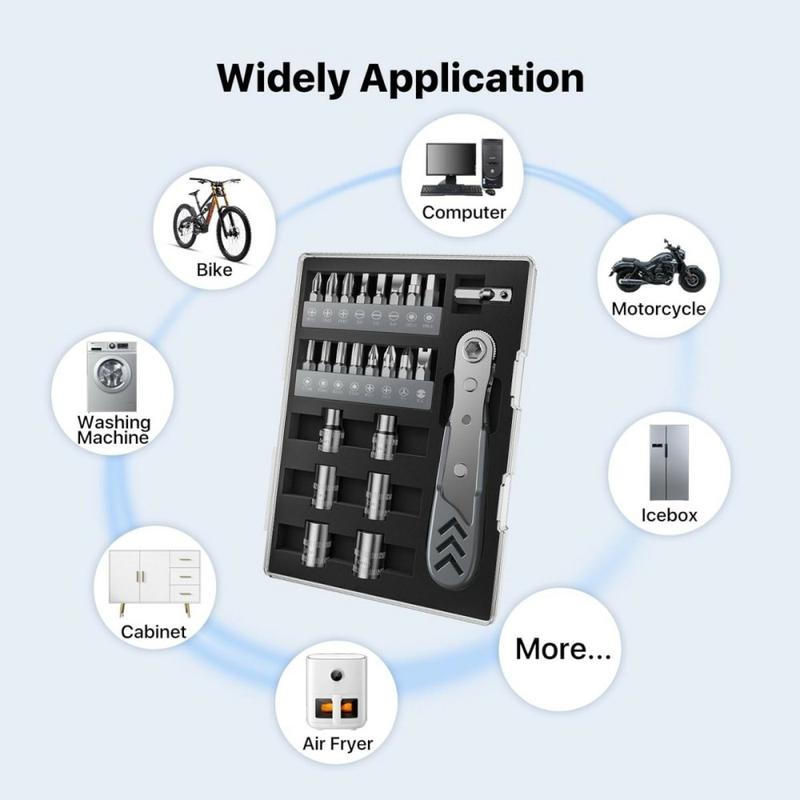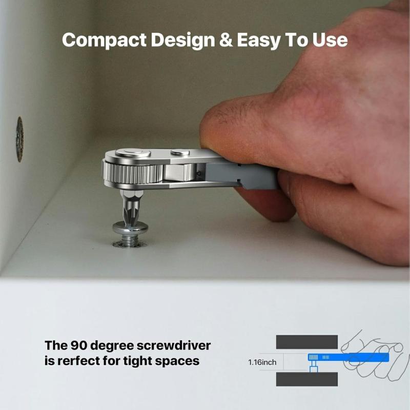Handle repairs more easily in tight spaces with the AXTH 23-in-1 right angle ratcheting screwdriver set. Designed for DIY work, electronics, household fixes, and general maintenance, this compact tool kit combines a 90-degree screwdriver, precision ratcheting mechanism, magnetic bits, and sockets in one practical set.