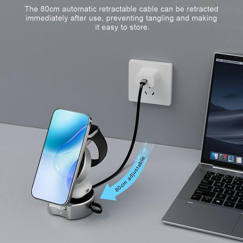 B30 3-in-1 Foldable Magnetic Wireless Charger - Qi2 15W Fast Charging Dock with 80cm Retractable USB-C Cable for Phone, Watch and Earbuds