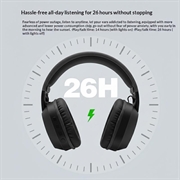 - Up to 26 hours playback with RGB lights off, or up to 14 hours with RGB on