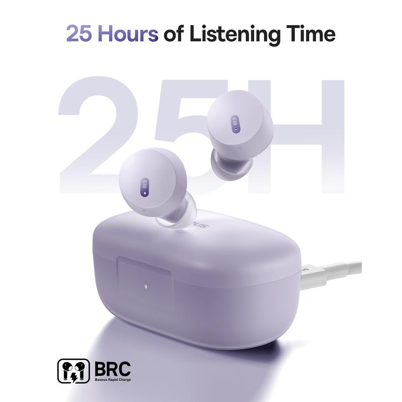 The Baseus Bowie E18 true wireless earphones combine modern design, reliable performance, and everyday comfort. With Bluetooth 5.3 technology, they deliver a fast, stable connection to smartphones, tablets, laptops, and more. Each charge provides up to 7.5 hours of continuous playback, and with the charging case, total listening time extends to 25 hours. Fast charging ensures up to 2 hours of music with just 10 minutes of charging. Built-in ENC noise reduction enhances call quality by filtering background noise, while the IPX4 waterproof rating protects against sweat and light rain. Compact and lightweight, the Bowie E18 earbuds are the perfect choice for music, movies, workouts, and calls.