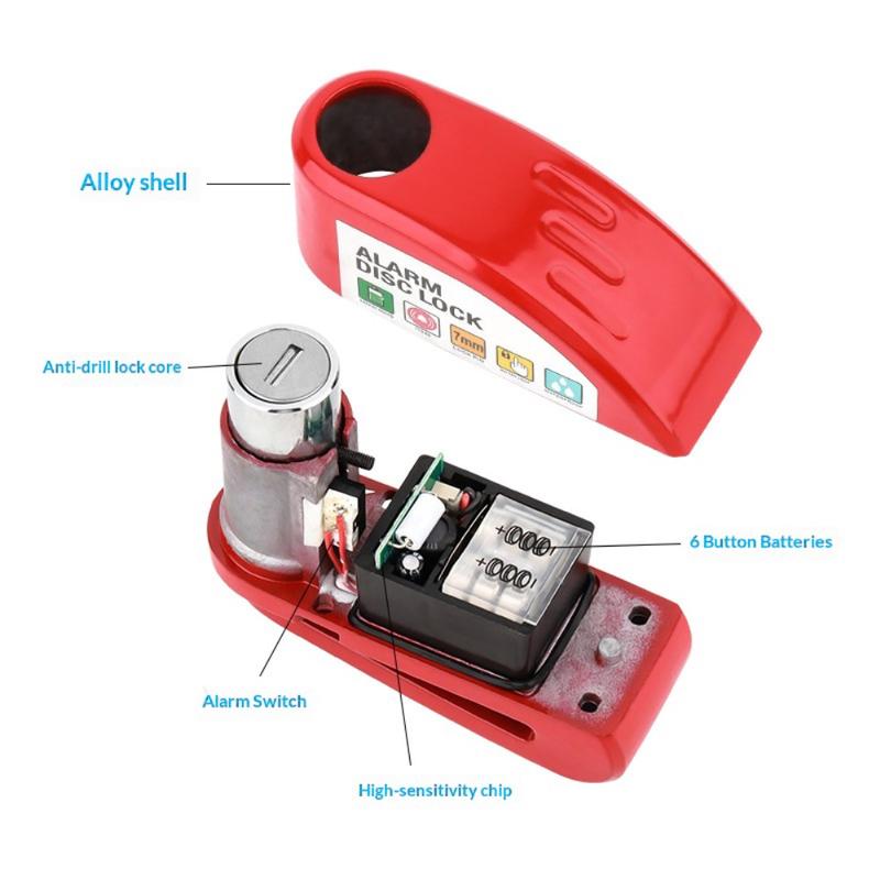 Disc brake alarm locks combine mechanical resistance with sound-based deterrence. A 110 dB alarm is comparable to the volume of a live concert, making it highly noticeable in public areas. Aluminum alloy bodies are commonly used in security devices because they offer strong impact resistance while remaining lightweight for portability.
