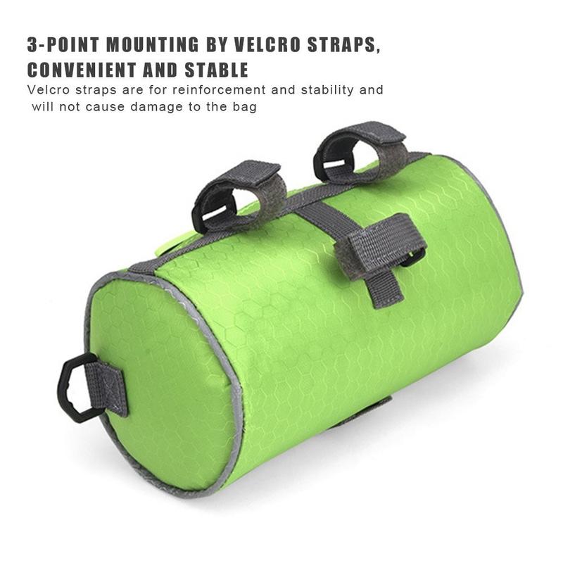 This handlebar bag is made of waterproof polyester + soft PVC, easy to wipe and clean. And the entire tube bag is filled with foam, which not only protects the internal items, but also can well maintain the cylinder shape