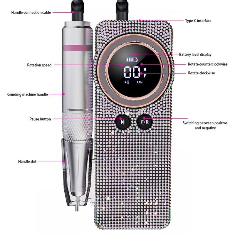• BLUEQUE BQ-108 Diamond Design Electric Nail Drill Machine for Gel, Acrylic - 35000 RPM Rechargeable Nail File with LCD Display