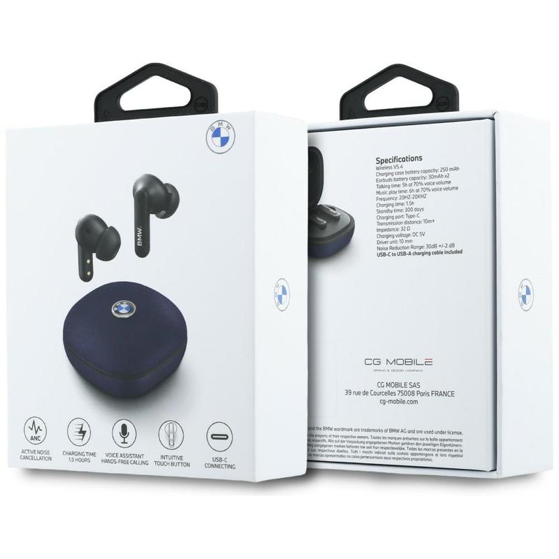BMW Leather Metal Logo ENC True Wireless Earphones with Touch Control - Bluetooth 5.4, Voice Assistant, USB-C Charging Case