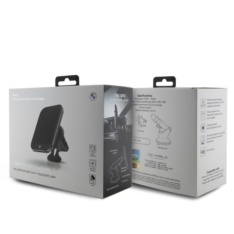 BMW Signature Edition Magnetic Induction Car Holder with 15 W Wireless Charging - MagSafe Compatible, Vent and Suction Mount