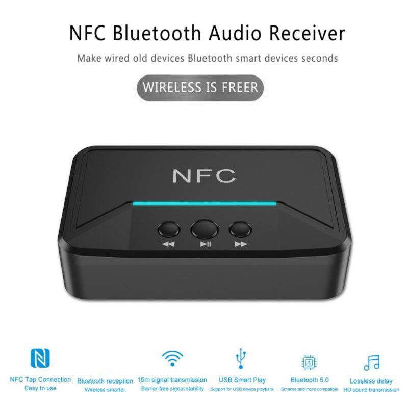 • BT200 NFC Bluetooth 5.0 Audio Receiver - AUX 3.5 mm & RCA Adapter with A2DP, USB Power, Auto On/Off for Car & Home Stereo (15 m Range)