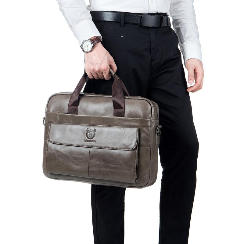 The BULLCAPTAIN 046 men’s leather briefcase is designed for professionals who need a reliable and stylish way to carry their work essentials. Crafted from premium top-layer cowhide leather, it offers a refined appearance combined with durability for everyday use. The smart pocket layout provides quick access to frequently used items while keeping valuables secure. With multiple carrying options, this bag adapts easily to office life, meetings, and business travel.