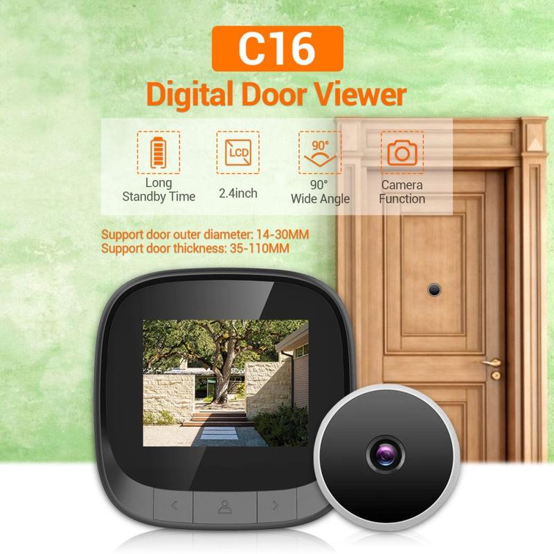 The C16 2.4-inch Smart Door Viewer offers a high-definition, wide-angle viewing solution for home security. Featuring a 2.4-inch TFT LCD display, 0.3MP peephole camera, and built-in photo storage, it allows you to see visitors clearly and record who comes to your door.