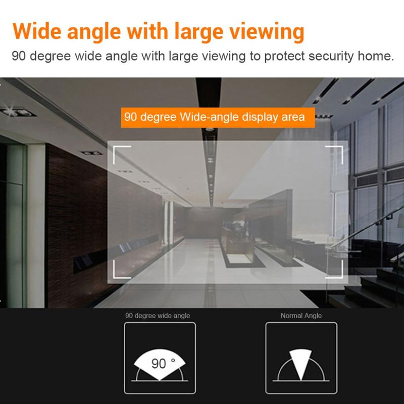 The 90° lens provides a broad field of vision, allowing you to see visitors and surroundings more clearly than with a traditional peephole.