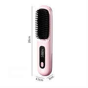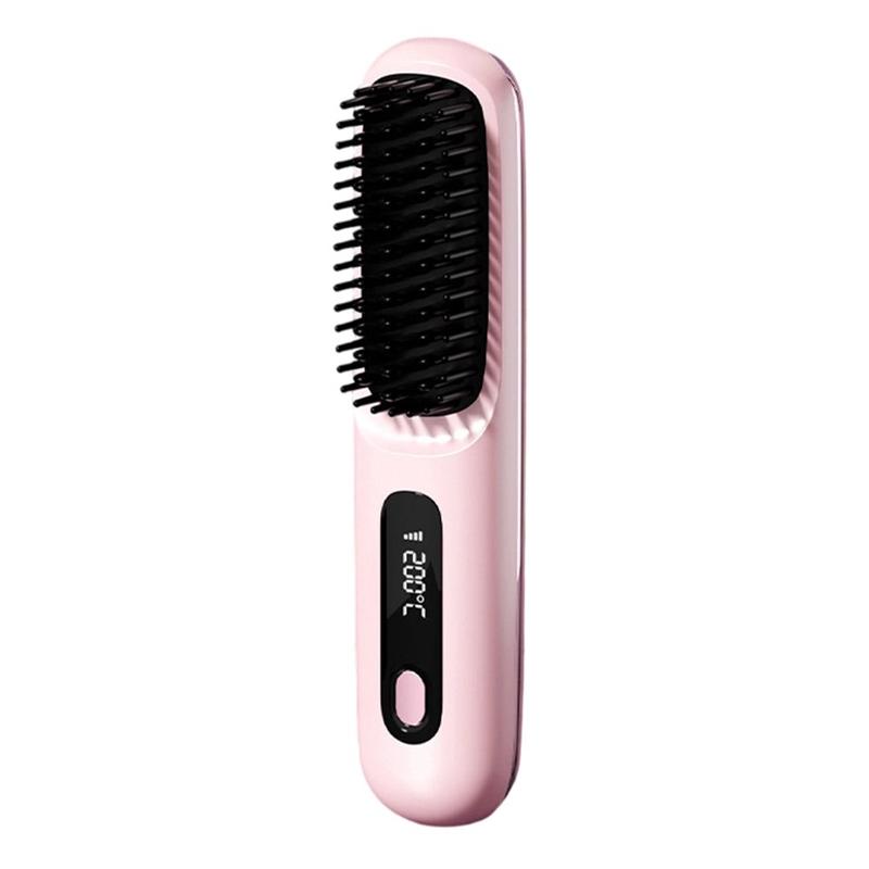 Cordless Hair Straightening Comb with LCD Display and 3 Temperature Settings - Pink