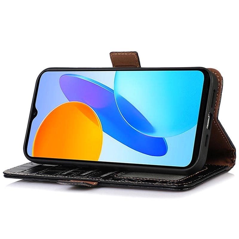 A lightweight and soft wallet case with a unique crocodile texture, the perfect choice to protect your Honor X20 SE and keep it undamaged. It's made of high-quality genuine leather and inner TPU material, designed with three card slots, an ID slot, and a pocket for cash, ideal for carrying your essentials next to your Honor X20 SE. Also, RFID technology effectively blocks signals and keep's your data secured.
