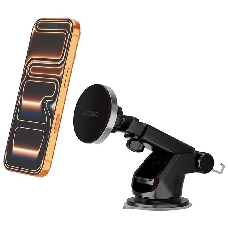 Deltaco Dual Mount Magnetic Wireless Car Charger/Holder - Qi2, 15W - Black