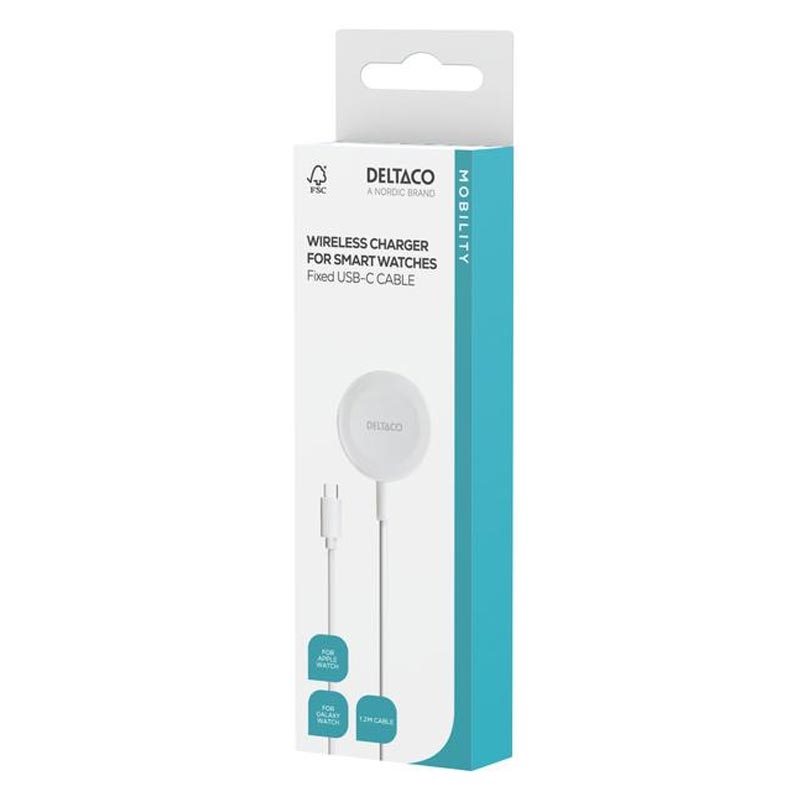 • Deltaco Magnetic Wireless Charger for Apple Watch/Galaxy Watch - with 1m USB-C Cable