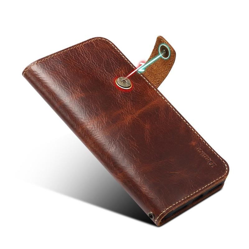 DENIOR Anti-Drop Phone Case for iPhone 14 Pro Genuine Leather Protective Cover Magnetic Clasp Wallet Phone Case with Stand