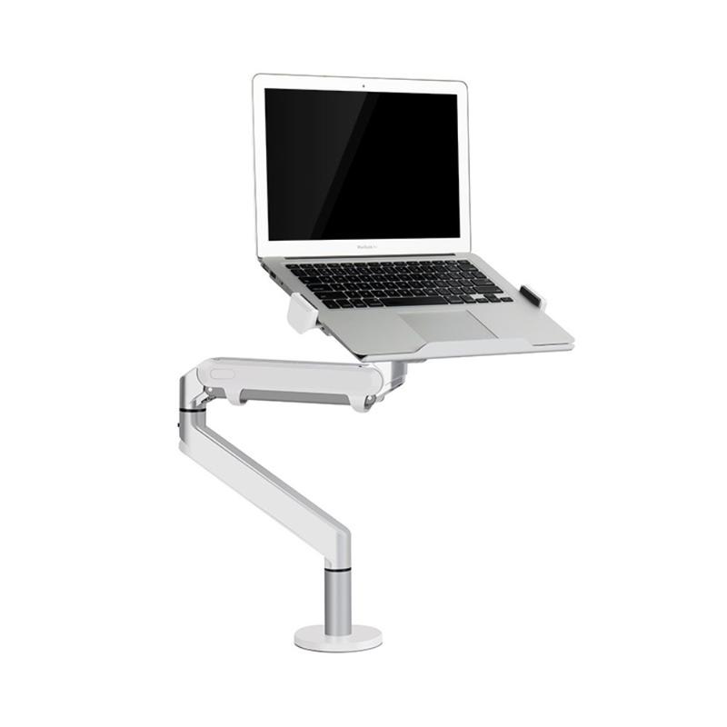 The mount features 360-degree screen rotation and multi-directional swivel functionality, allowing precise adjustment of viewing angles. Easily tilt, rotate and reposition your laptop or monitor for optimal comfort throughout the day.