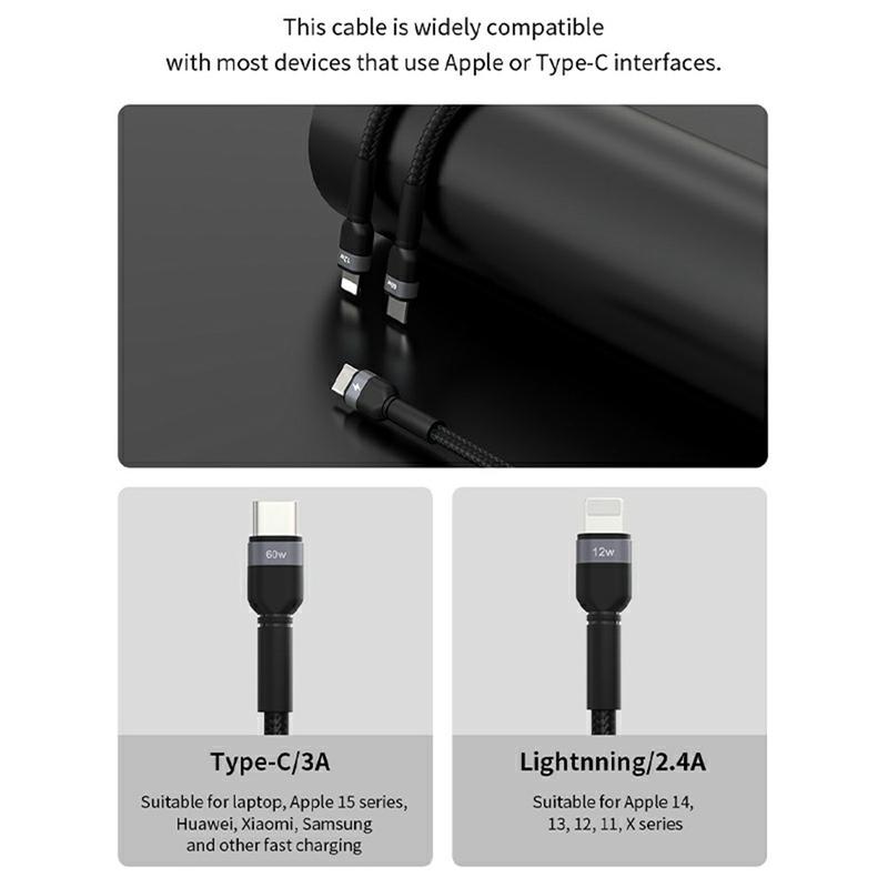 Devia EC648 Extreme Speed 2-in-1 USB-C Cable - USB-C to USB-C 60W PD and Lightning 12W, Braided Nylon, Data Sync, 1.2m