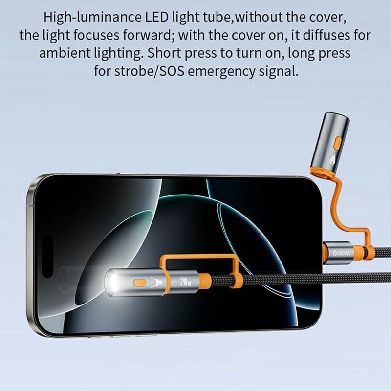 The Devia EC660 Ultra2 is a multi-function USB-C to USB-C cable built for people who want one compact tool for charging, syncing, and outdoor convenience. It supports PD 3.1 fast charging up to 240 W for compatible USB-C devices, while also adding a built-in LED lamp and an electronic lighter module for practical use during travel and camping. With an E-Marker chip for safer power management and a durable braided build, it is designed for daily carry, emergencies, and on-the-go setups.