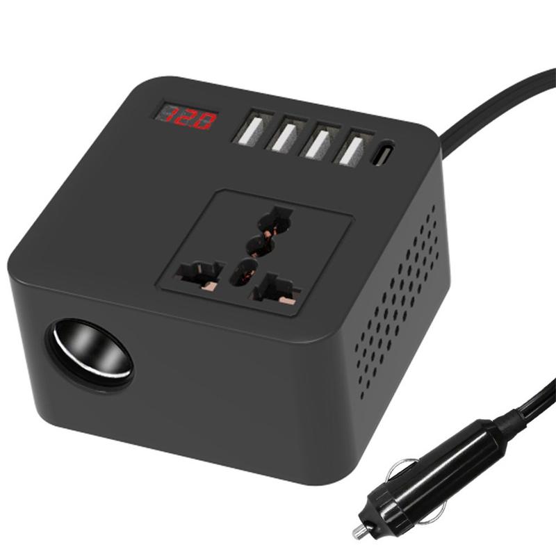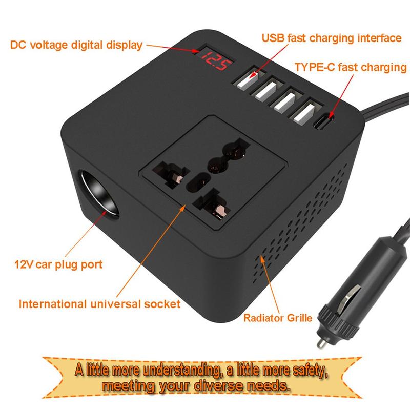 Digital Display Car Power Inverter - 12V/24V DC to 110V/220V AC Converter with USB-C, USB-A, and AC Outlet 150W