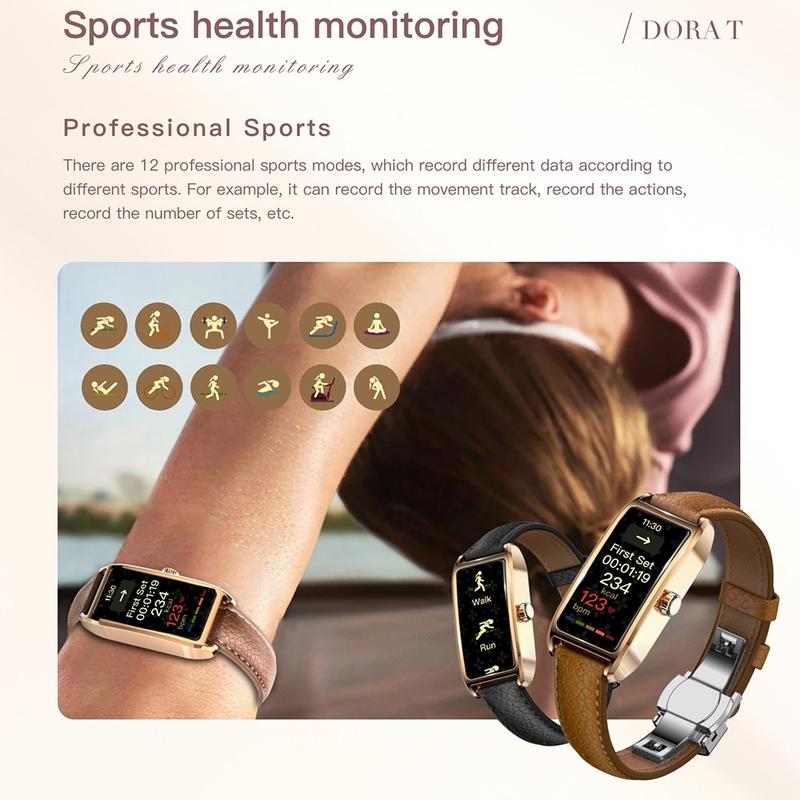 Embrace both style and intelligence with the Dora T smartwatch for women, a refined blend of fashion and functionality. Designed to complement feminine elegance, this smartwatch enhances everyday life with advanced health tracking, smart notifications, and a graceful design that fits any occasion - from workouts to workdays.