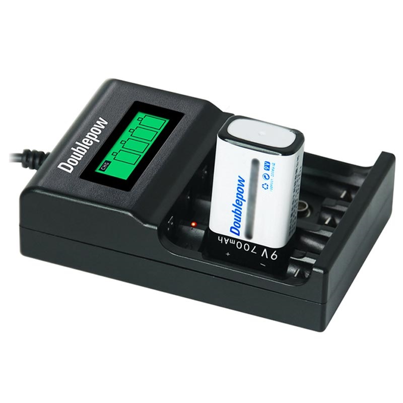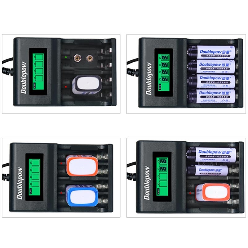 Doublepow DP-UK95 4-Slot Multifunctional Fast USB Charger for AA, AAA, 9V Rechargeable Batteries with LCD Display