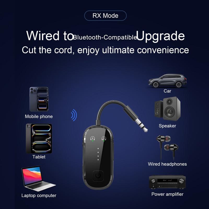 Upgrade your wired audio devices with this Bluetooth 5.4 transmitter receiver 2-in-1 dual link audio adapter. Designed for flexible everyday use, this compact adapter works in both transmitter and receiver mode, making it easy to add wireless audio functionality to a wide range of devices. Whether you want to stream sound from a non-Bluetooth TV to wireless headphones or play music from your phone through a wired speaker system, this adapter offers a simple and practical solution.